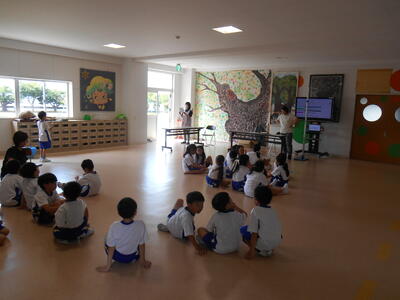 「どんな学校で過ごしたいですか」と子どもたちに投げかけた後、「みんなが気持ちよく過ごすために大切なのは必要なルールを守ること」ということを伝えました。