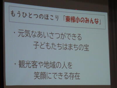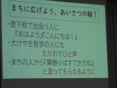 あいさつを通して,東根小のみんなもまちの「宝」になっていってほしいものです。