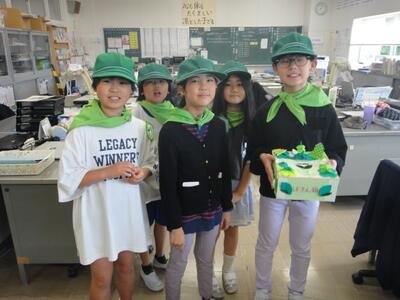 4年生は,予め募金を行う日を全校に伝えたり,募金の際に言う言葉を練習したりしてこの日を迎えました。朝,緑の少年団の帽子,ワッペン,ネッカチーフなどで身支度を整えて,各教室を訪問するとたくさんの人が募金に協力しました。