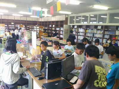 毎月10、20、30日は、特別に3冊借りられるチャンス♪たくさんの本を読みたい児童で、図書室はいつもより賑わっていました!