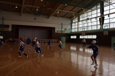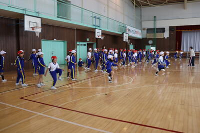 体育館で元気いっぱい走る練習をしていました。