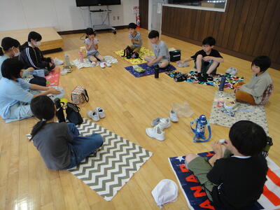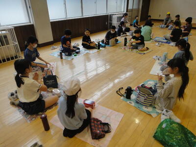 食べ終わったら,予め班長さんが考えてくれた「鬼ごっこ」「だるまさんが転んだ」「ハンカチ落とし」などで遊びました。汗をかくほど体を動かして,班員の仲が深まりました。