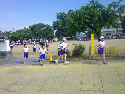 1校時、3・4年生合同でマラソン記録会に向けて練習をしました。