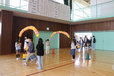 みんなでゲームをした後、1年生へプレゼントを渡しました。