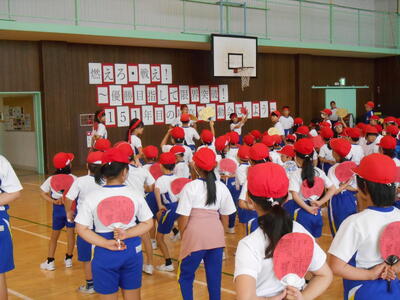 2校時目に全校児童が応援練習を行いました。