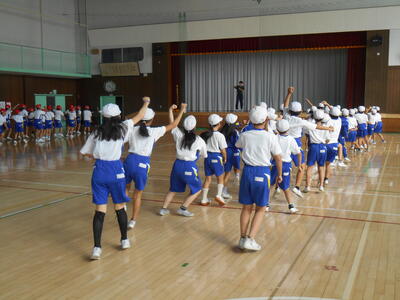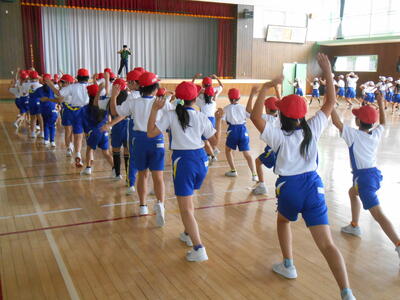 2校時目に予定していた全校運動会練習ができなくなったため,4年生は体育館でリズムダンスの練習をしました。