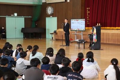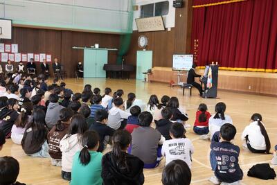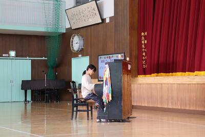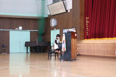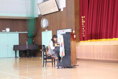 被爆ピアノ平和コンサート実行委員会の方のお話の後,本校保護者,児童3名が演奏をしました。とてもきれいな音色を3年生以上の児童や演奏児童の保護者,教職員が楽しむことができました。