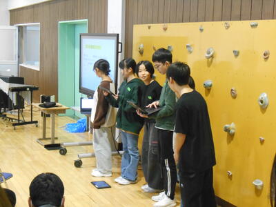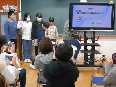 小体育館などの3か所で,14グループが「命継がれる門脇小学校」「命を守る訓練の大切さについて」「震災の怖さを伝えよう」「ホッキョクグマノの命を守るために」「未来に繋げる」といったテーマで,パワーポイントを使って発表しました。