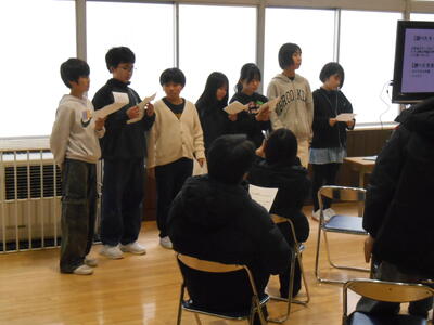 初めは,「生きる」~震災・環境・人間や動物の命にふれて考えたこと~という内容で総合的な学習の時間に学んだことを発表しました。