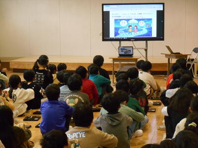 本日,「メディア(特にインターネット)を使うにあたってのリテラシー,児童が遭遇しそうな事例を具体的に知る活動を通して,安全に使うための知識や判断力を身に付ける」ことをねらいとして,全学年の情報モラル教室を行いました。