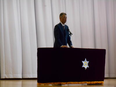 学校長は,大きく2つのことについて話をしました。1つ目は,午年(うまどし)なので,馬のように自分の目標に向かって力強く駆け抜けてほしいという話です。