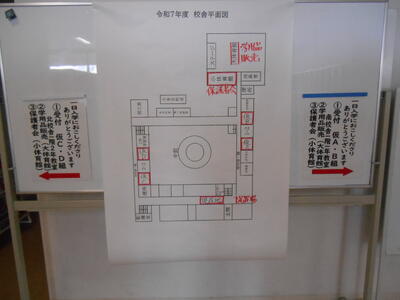 仮のA~B組で受付をしていただき,保護者の皆様には学用品の購入と保護者会への参加をしていただきました。その間,新入児の皆さんには,氏名呼び上げの際の返事,お絵描き,学校探検などをしてもらいました。