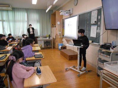委員会活動引継ぎ会では,6年生の各委員会委員長や副委員長から今年度の活動内容や来年度の委員会の人に伝えたいことを発表しました。その後,来年度の新委員長紹介や抱負の発表を行いました。