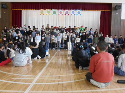 1~5年生が4校時目に体育館で6年生を送る会のリハーサルを行いました。