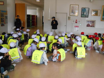 1年生は,下校班で下校しています。一度けやきホールに集まって,学童保育所に行く人,各地区に帰る人に分かれます。途中まで学校の職員が一緒に下校すると,おうちの人が迎えにきてくれています。来週からは子どもだけの下校班で帰る予定です。